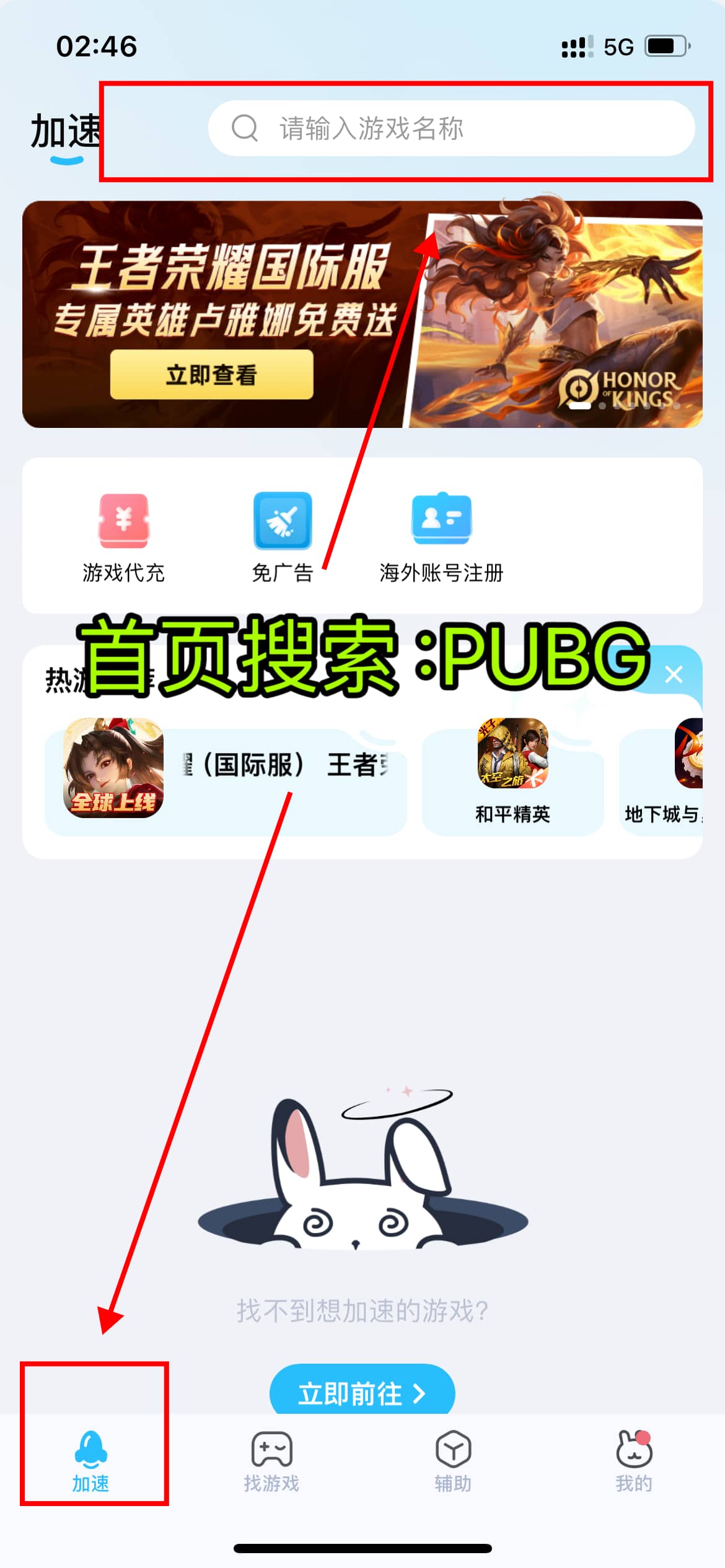 在首页搜索栏搜索:PUBG